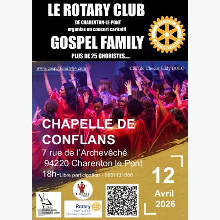 Le Rotary Club de Charenton-le-Pont organise un concert caritatif le dimanche 12 avril 2026 à 18h00.